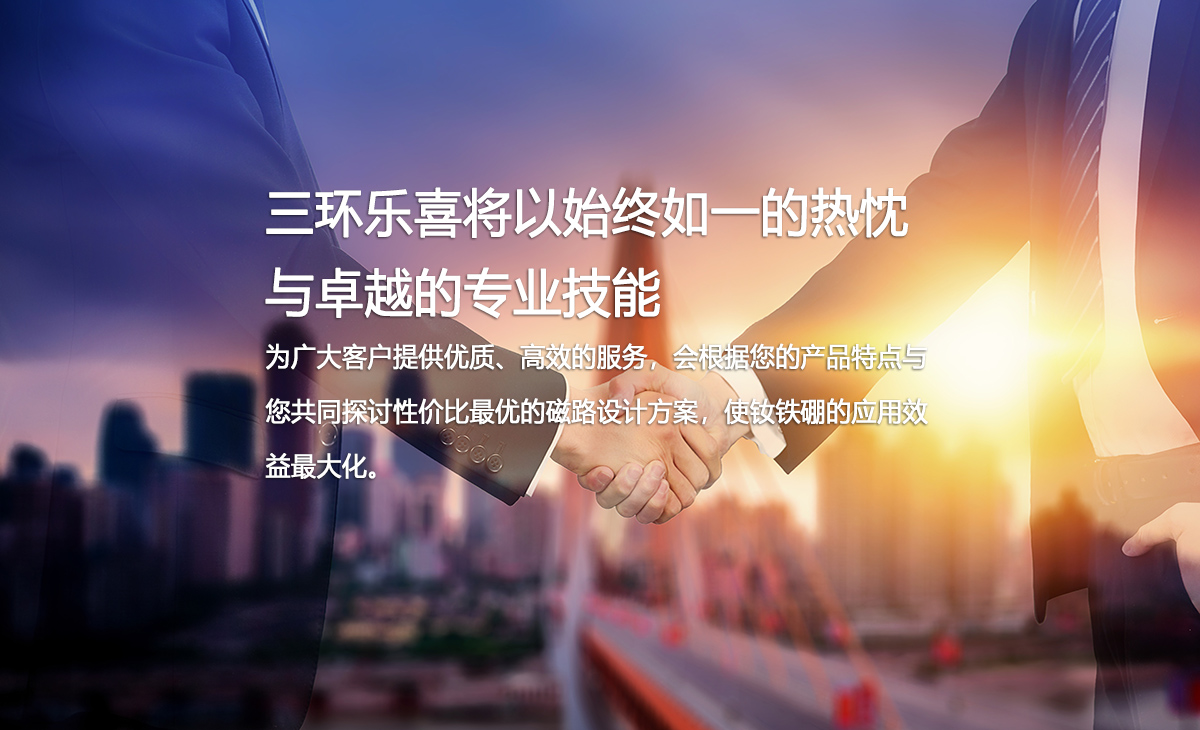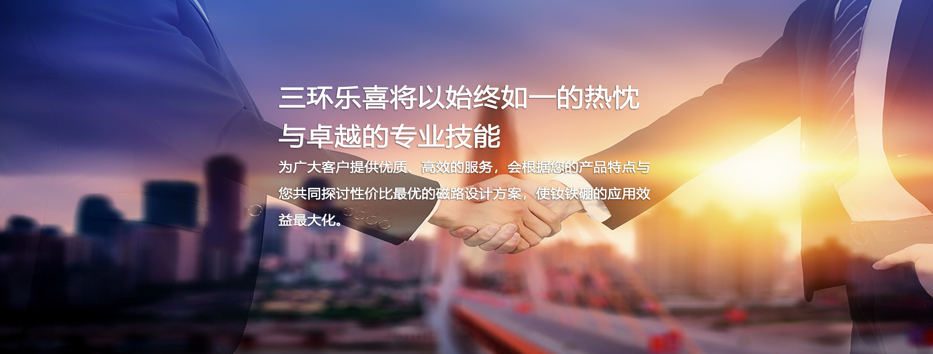 三環(huán)樂喜新材料有限公司,成立于1990年,控股股東中科三環(huán)(股票代碼:000970)為中國(guó)稀土永磁材料產(chǎn)業(yè)的代表企業(yè)、全球特大的釹鐵硼永磁體制造商之一。自成立以來,公司一直致力于研發(fā)、生產(chǎn)、銷售中、高品質(zhì)燒結(jié)釹鐵硼,年生產(chǎn)能力超過6000噸,是中科三環(huán)的重要生產(chǎn)基地。